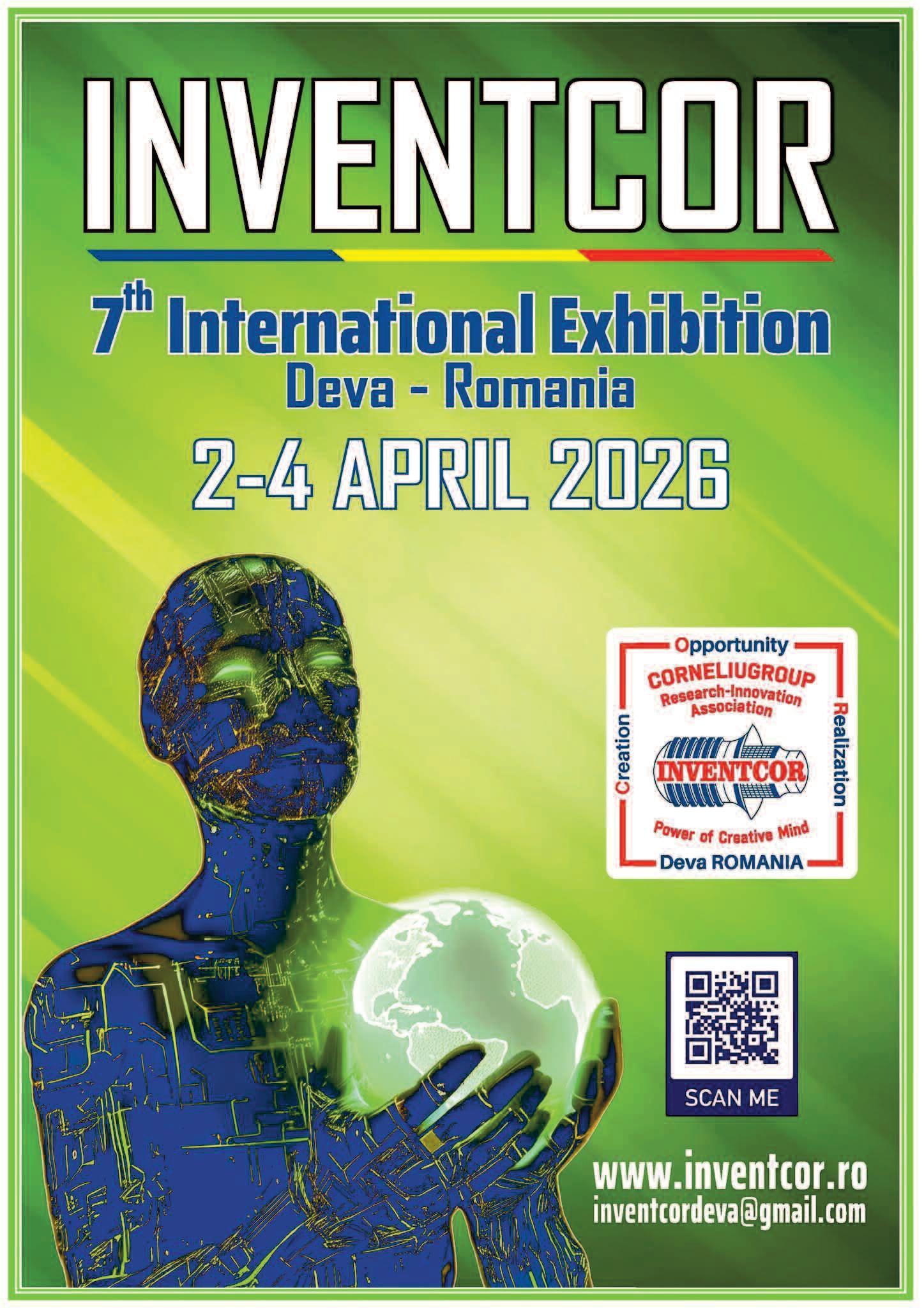 perioada 2-4 aprilie 2026 Tema principală a ediției, „Protecția Mediului”, reflectă preocupările actuale la nivel global, aducând în prim-plan soluții sustenabile și inovatoare INVENTCOR 2026 reunește un portofoliu impresionant de peste 500 de lucrări, care acoperă o gamă variată de domenii: invenții și prototipuri industriale, proiecte de cercetare și teze de doctorat, produse inovatoare și