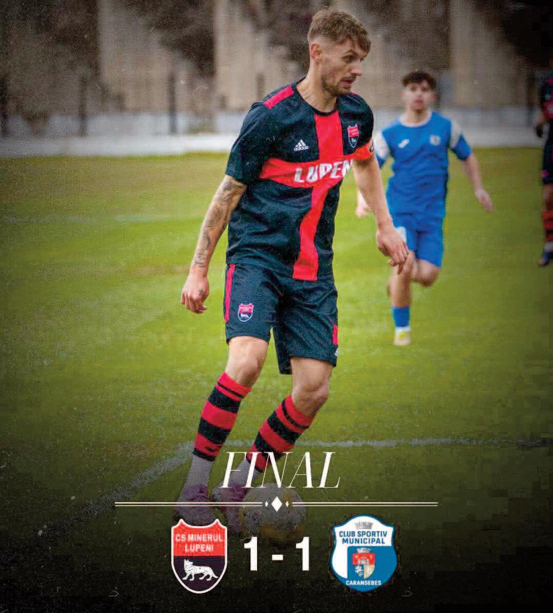 CS Minerul Lupeni a demonstrat spirit de sacrificiu în fața propriilor suporteri, reușind să obțină un rezultat de egalitate, scor 1-1, în confruntarea disputată pe stadionul din Lupeni, împotriva celor de la CSM Caransebeș.