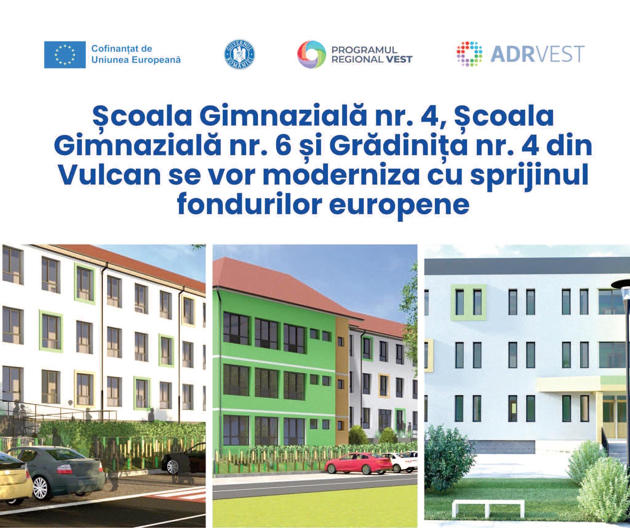 structurală și energetică a trei unități de învățământ din municipiul Vulcan Obiectivul principal este atingerea standardelor actuale de eficiență, prin soluții tehnice moderne, care includ instalarea de panouri fotovoltaice și sisteme de încălzire cu pompe de căldură. Din valoarea totală a investiției, aproximativ 10 milioane de lei sunt direcționate către Grădinița nr 4, în timp ce restul de 40 de milioane de lei vor acoperi lucrările de la Școala nr 4, Școala nr 6 și unitățile preșcolare componente