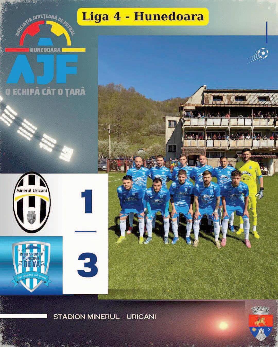 CSM Deva continuă marșul victoriilor în campionatul ligii a patra, reușind să se impună cu scorul de 3-1 în deplasarea de la ACS Minerul Uricani.