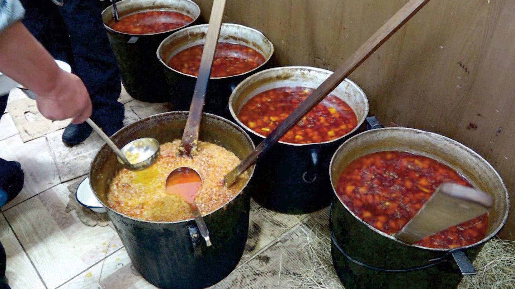 „Păi, ca de obicei, de ani de zile din urmă, pregătirea asta se face cu carne de oaie. Trebuie aleasă bine carnea, am pregătit 7 ceaune de tocană. Și nu sunt singur, am avut oameni care m-au ajutat din timp și până la ora actuală, că e muncă multă, nu se face bătând din palme