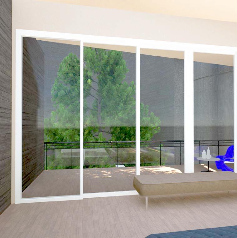 To accommodate Wade’s desire for security, while creating multiple outdoor living spaces, the home features an outdoor deck overlooking the Bayou, as well as private courtyards that carve into the existing silos while shielding views from the surrounding neighborhood and streets.