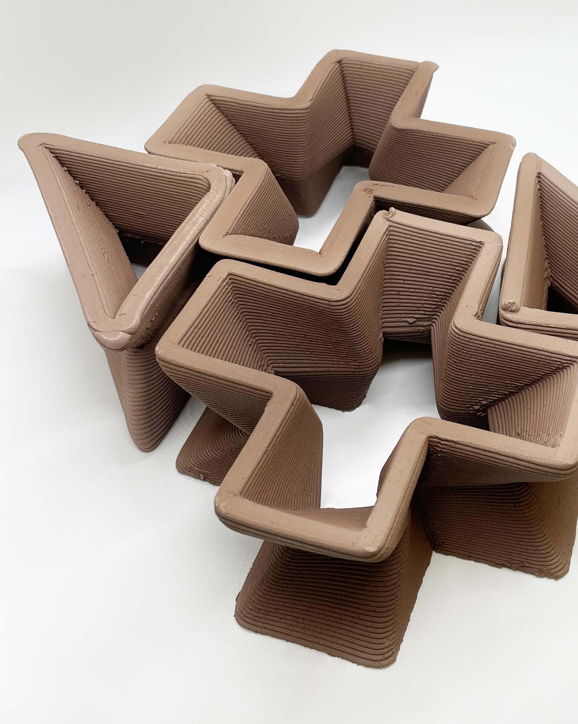 • Fabricated and assembled clay 3D printed blocks.