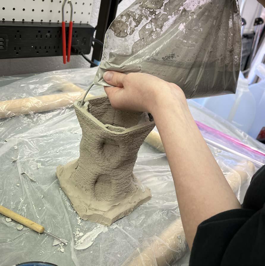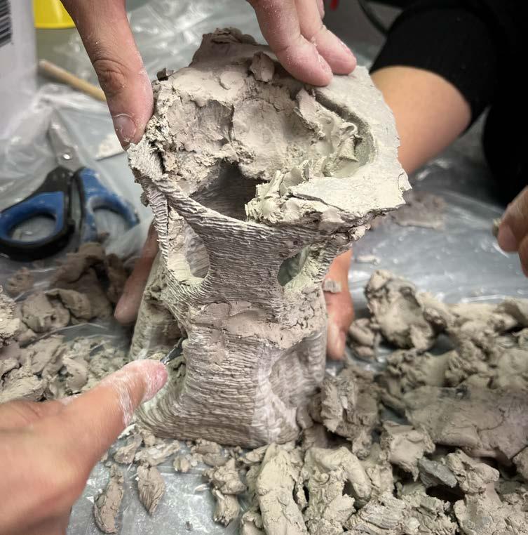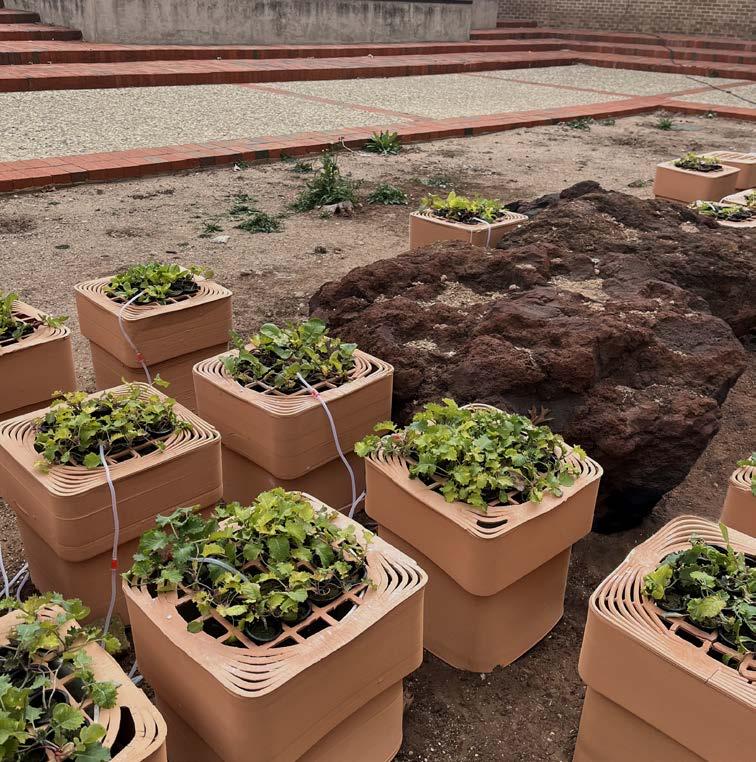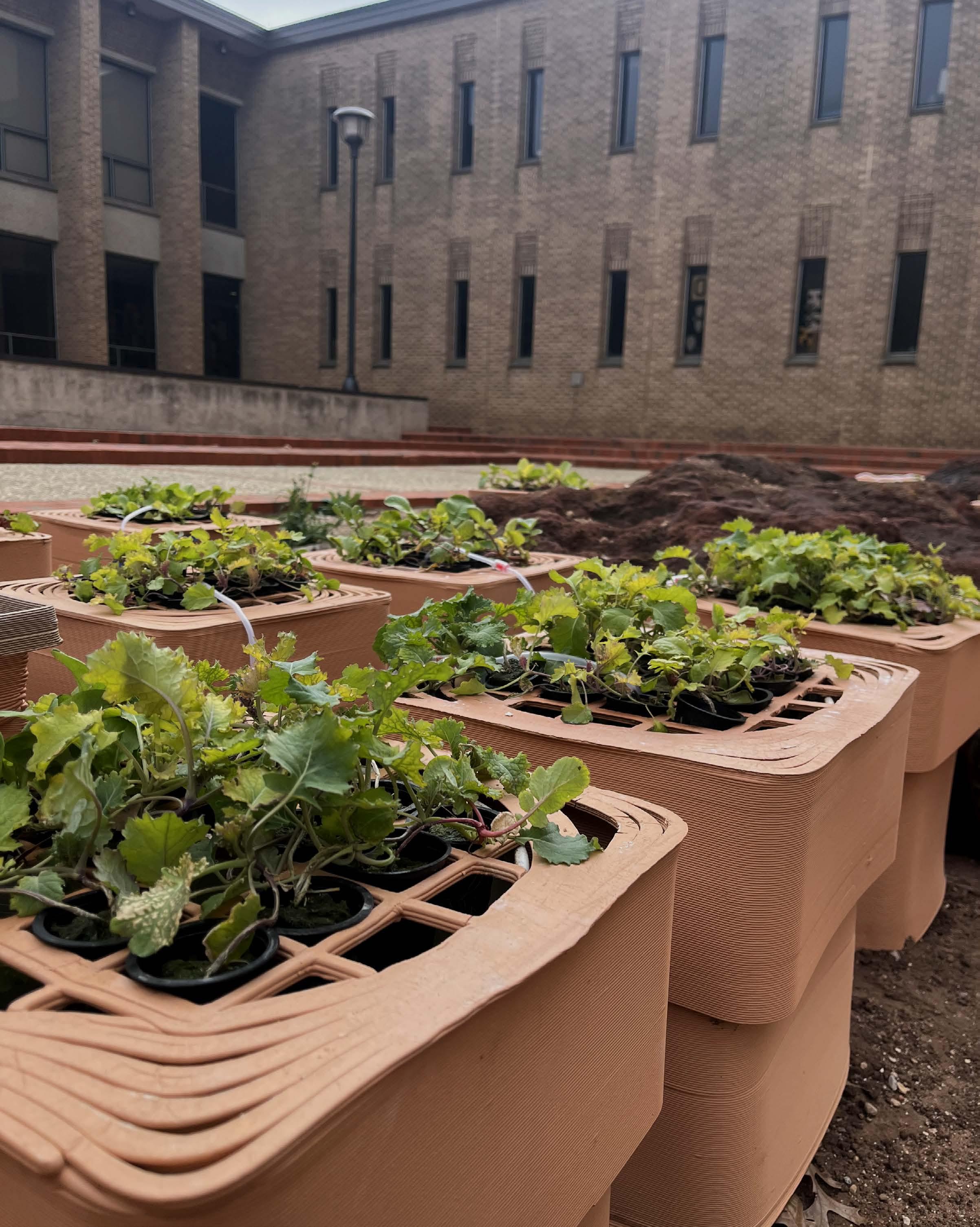 The course culminated in a class-wide 6-week fabrication project that integrated Deep Water Culture hydroponic systems with clay 3D printed modules that grow a variety of plants within the college’s courtyard. This installation mediates the grid condition of the courtyard and the organic form of the pre-existing rock on site.