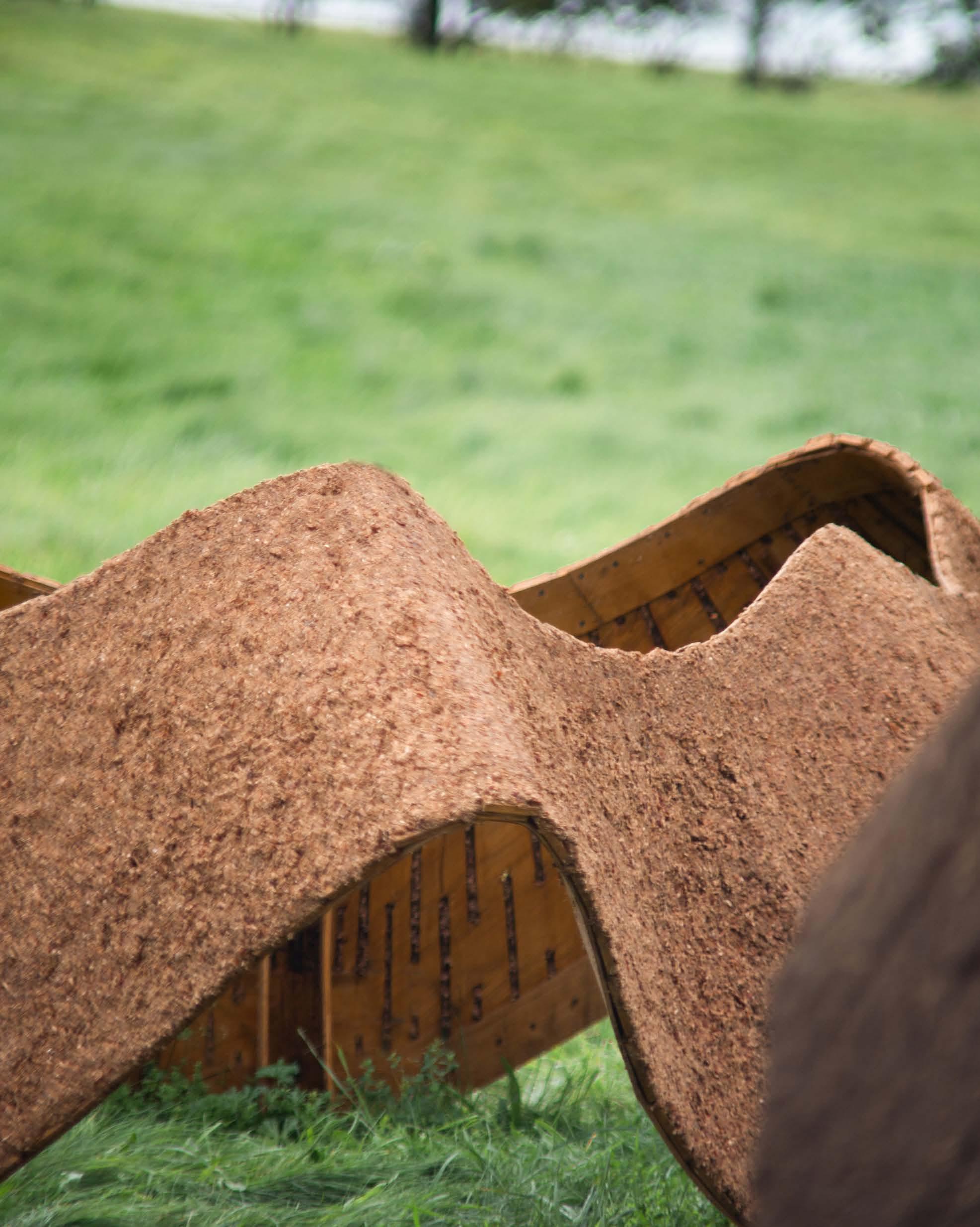 During this two-week fabrication period, we cut and assembled both of the pavilion surfaces, including leveling and reinforcing their forms. and applied the coffee ground coating to the Java Pavilion.