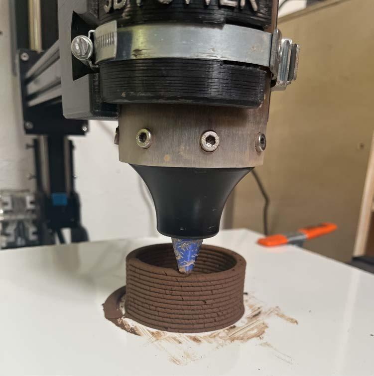 Initial testing included the isolation of a desirable moisture content, then was further developed to evaluate the changes occuring with different additives to the soil-water mixture, such as sand, stoneware clay, and reclaimed wheat straw. These protypes were evaluated for print quality and fidelity, as well as preliminary testing for moisture resistance and compressive strength. Future research will investigate how the most successful recipe, which incorporates locally reclaimed wheat straw, can be implemented in architectural applications to aid in passive cooling.