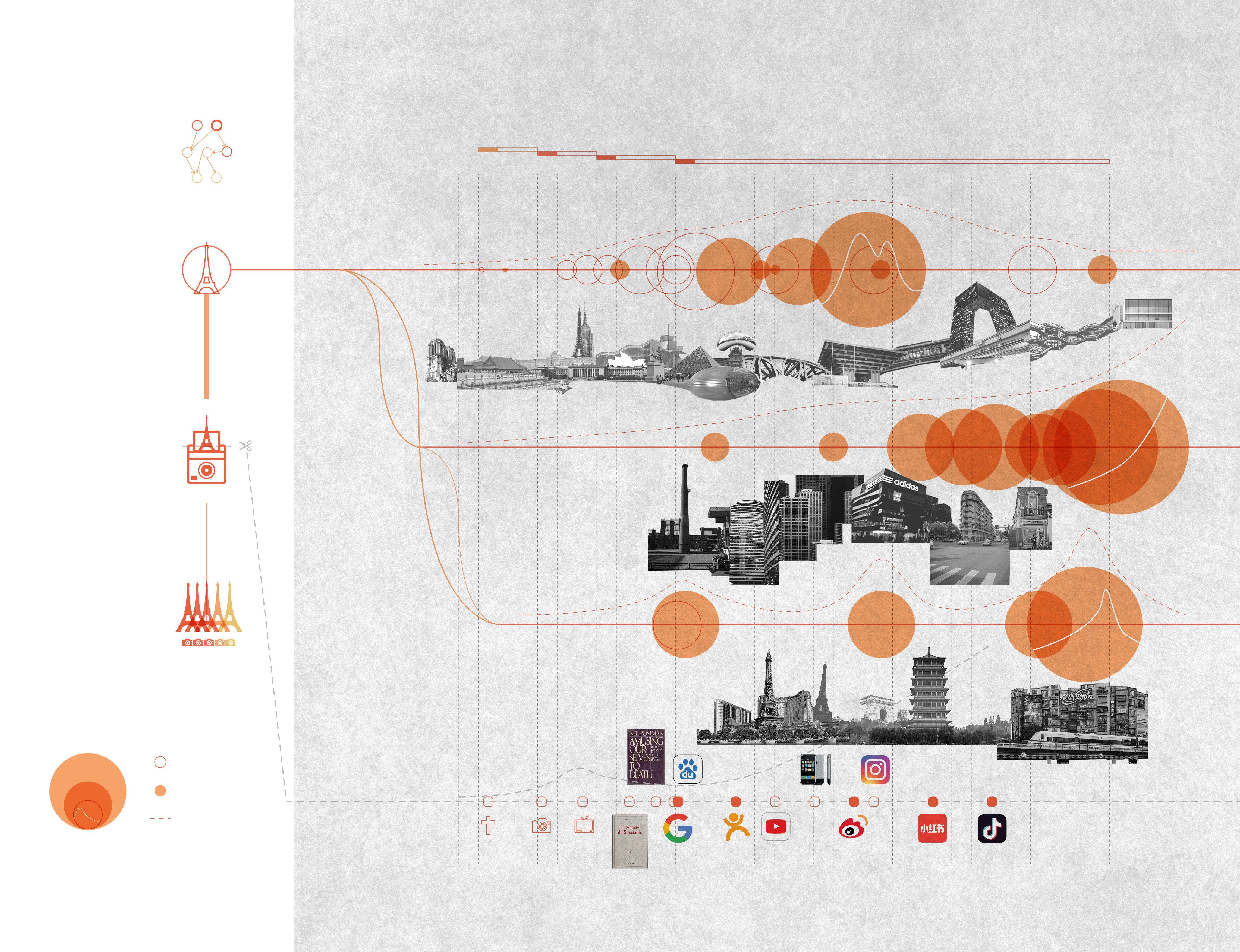 We live in an age of rapid decay. The Internet and the new mass media have turned public life completely upside down, creating a unique picture of cyberspace. For architecture, the process of public perception of architecture through hands-on experience has become experiencing through media, which makes the way of public perception of architecture very special. This study will start from Guy Debord’s theory of “the Society of the Spectacle”, a historical overview and analysis of the present cyber architecture, and finally an ironic design.