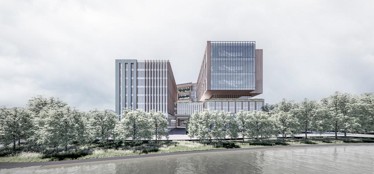 Section perspective of the test track Section perspective of the R&D center Section perspective of the Showing track